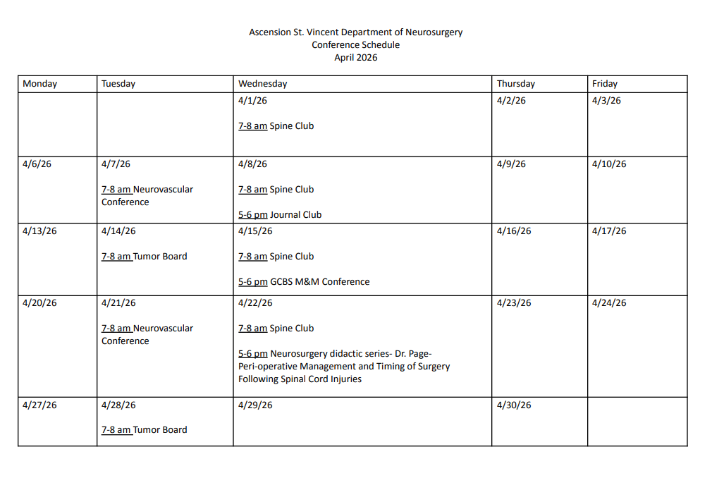 PGY5: Neurovascular (6 months: 3 months open vascular rotation with option to do 3 months elective endovascular specialization); Research (6 months)