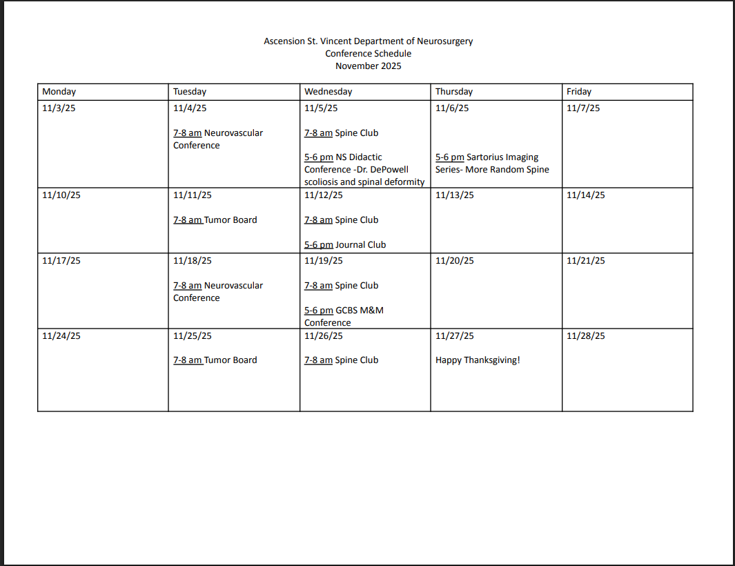 Interns will spend their first year immersed in the basic sciences, neuro ICU, and acute neurosurgical arena, where they will build rapport with clinicians and receive a broad exposure to inpatient as well as outpatient neurosurgical care. PGY2 continues advanced work with acute neurosurgery patients and introduction to the pediatric population. In the PGY3 year residents get additional experience in pediatrics as well as a comprehensive spine rotation with an elective 3-month advanced spine experience. Tumor and functional/SRS service is the focus of the PGY4, again with the ability to extend the rotation into advanced experiences. The PGY5 year is split between neurovascular (endovascular and open vascular) and a dedicated 6 month research rotation. Finally, the 6th year serves as the chief year and the 7th as an enfolded fellowship in one of the following: complex spine, cerebrovascular/skull base, neuro-oncology, functional, pediatrics, endovascular, neurocritical care or transition to practice.