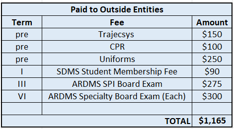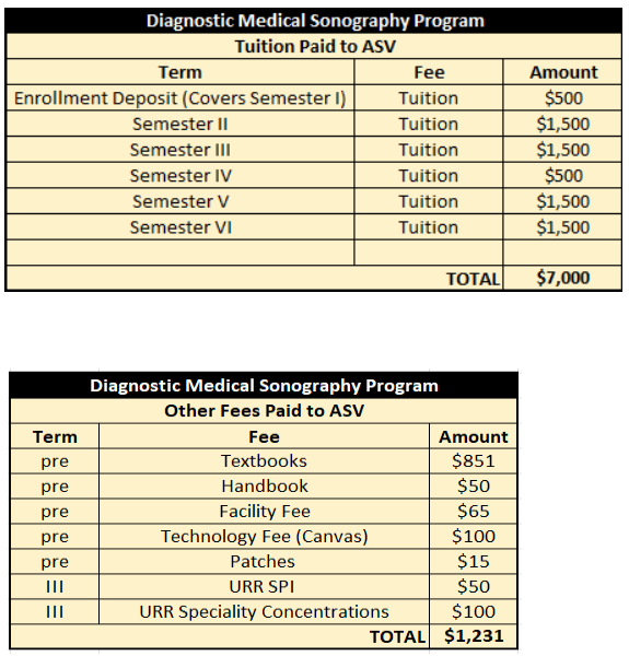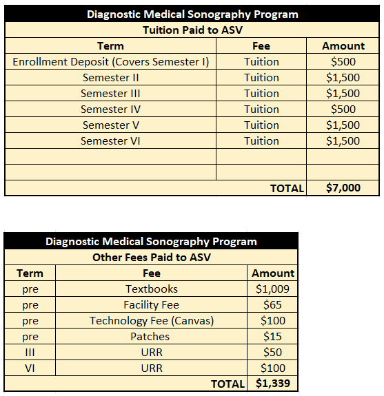 The Ascension St. Vincent Sonography Program tuition and fees are one of the lowest of comparable associate-degree programs in Indiana. Our program is very affordable and accessible to everyone since we are not approved for federal and state student financial aid (FAFSA) student aid programs.